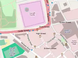 The modern Castle Quarter is generally defined as the part of the city centre closest to Cardiff Castle, including the Castle Arcade, High Street Arcade and Duke Street Arcades, High Street and St Mary Street, Castle Street/Duke Street and Westgate Street.[1]