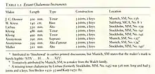 Chart of the eight historical chalumeaux that are still in existence today.