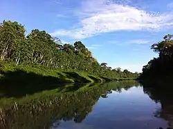 The river originates in Peru. After crossing the border into Brazil it flows in a north east direction through the 695,303 hectares (1,718,130 acres) Chandless State Park, created in 2004, which protects an area of rainforest with bamboos that contains various endemic species of flora and fauna. The main tributaries of the Chandless in this section are the Cuchichá and Chandless-chá streams. The Cuchicá forms the northern border of the park to the point where it joins the Chandless. The Chandless joins the Purus to the north of the park.[2]