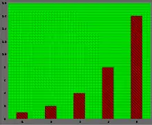 An example of a chart containing gratuitous chartjunk. This chart uses a large area and much "ink" (many symbols and lines) to show only five hard-to-read numbers, 1, 2, 4, 8, and 16.
