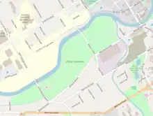 On September 24, 2016, Chevy Commons hosted its first event as a finished park: a children's biking event called Cycling Circles.[14] In May 2017, a pedestrian bridge linking Chevy Commons with Carriage Town and connecting two already-existing segments of the statewide Iron Belle Trail was planned. By that point, both the first and second phases of the project had been completed, with additional third and fourth phases planned as part of the broader Riverfront Restoration Project, which endeavors to naturalize the Flint River and make it more accessible, safer, and easier to use for recreation. The third phase concerns 9 acres (3.6 ha) of land along Kearsley Street (between Swartz Creek and Stevenson Street) and was expected to be completed by the end of 2017; the fourth phase deals with greening the area along the river on both sides of Stevenson Street in 2018. In total, the creation of Chevy Commons is expected to cost approximately $17.3 million.[15]