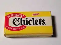 Chiclets is an American brand of candy-coated chewing gum manufactured by Mondelez International. The brand was introduced in 1900 by the American Chicle Company, a company founded by Thomas Adams.[1]