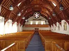 The chapel more than doubled in size in 1955 based on a design by Paul Pascoe, who did not interfere with the Gothic Revival appearance of the school's quadrangle.[1]