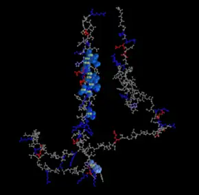 The protein is basic and appears to have a relatively high concentration of positively charged amino acids, lysine and arginine, in comparison to negatively charged amino acids, aspartic acid and glutamic acid. The repetitive amino acid structure, “SQLR”, can be found in two locations in the protein.[12]