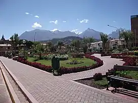 ![]() Vallunaraju and Ranrapalca (both snow-covered), Rima Rima and Churup (on the right) as seen from Huaraz | |