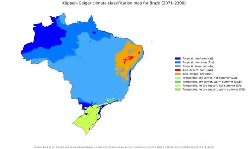 - ↑ Rattis, Ludmila (11 November 2021). "Climatic limit for agriculture in Brazil". Nature Climate Change. 11 (12): 1098–1104. Bibcode:2021NatCC..11.1098R. doi:10.1038/s41558-021-01214-3. S2CID 243991245. Retrieved 22 September 2022.