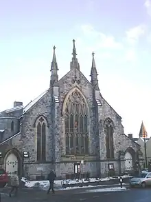 The name Clitheroe is thought to come from the Anglo-Saxon for "Rocky Hill",[5] and was also spelled Clyderhow and Cletherwoode,[6] amongst others. The town was the administrative centre for the lands of the Honour of Clitheroe. The Battle of Clitheroe was fought in 1138 during the Anarchy. These lands were held by Roger the Poitevin, who passed them to the de Lacy family, from whom they passed by marriage in 1310 or 1311 to Thomas, Earl of Lancaster.[6] It subsequently became part of the Duchy of Lancaster until Charles II at the Restoration bestowed it, on George Monck, 1st Duke of Albemarle, from whose family it descended through the house of Montague to that of Buccleuch.[6]