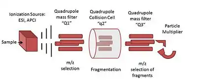 Schematic of a triple quadrupole mass spectrometer