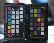 - ↑ The ColorChecker was originally produced by Macbeth (then a subsidiary of Kollmorgen), which through a series of mergers and acquisitions now belongs to X-Rite.