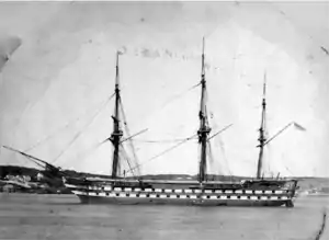 ![]() HMS Ganges at anchor near Victoria Harbour | |