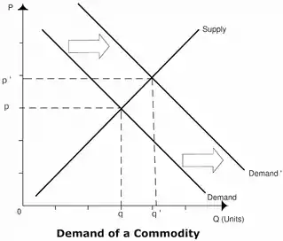 As seen in Figure 3, as the demand for a commodity shifts in (less demand) the quantity decreases to q’. This decreased demand is likely to decrease GDP, as less exporting takes place, as demonstrated by the equation for GDP below.