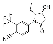 2. Aikawa K, Asano M, Ono K, Habuka N, Yano J, Wilson K, et al. (July 2017). "Synthesis and biological evaluation of novel selective androgen receptor modulators (SARMs) Part III: Discovery of 4-(5-oxopyrrolidine-1-yl)benzonitrile derivative 2f as a clinical candidate". Bioorganic & Medicinal Chemistry. 25 (13): 3330–3349. doi:10.1016/j.bmc.2017.04.018. PMID 28454849.