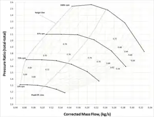 7. "NASA Technical Reports Server (NTRS) 19650013744: Aerodynamic Design of Axial Flow Compressors". January 1965 via archive.org.. Figure 27 Compressor maps for various operating conditions