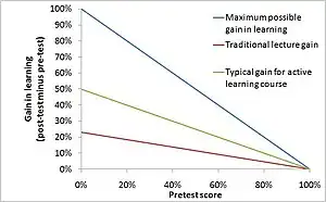 Concept inventories are education-related diagnostic tests.[2] In 1985 Halloun and Hestenes introduced a "multiple-choice mechanics diagnostic test" to examine students' concepts about motion.[3] It evaluates student understanding of basic concepts in classical (macroscopic) mechanics. A little later, the Force Concept Inventory (FCI), another concept inventory, was developed.[3][4][5] The FCI was designed to assess student understanding of the Newtonian concepts of force. Hestenes (1998) found that while "nearly 80% of the [students completing introductory college physics courses] could state Newton's Third Law at the beginning of the course, FCI data showed that less than 15% of them fully understood it at the end". These results have been replicated in a number of studies involving students at a range of institutions (see sources section below). That said, there remain questions as what exactly the FCI measures.[6] Results using the FCI have led to greater recognition in the science education community of the importance of students' "interactive engagement" with the materials to be mastered.[7]