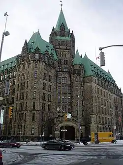 The Confederation Building is a office building in Ottawa, Ontario, Canada. Located just west of the Parliament Buildings at Bank Street and Wellington Street, it is generally considered part of Parliament Hill.