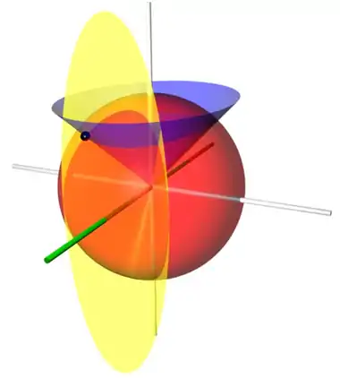 Conical coordinates, sometimes called sphero-conal or sphero-conical coordinates, are a three-dimensional orthogonal coordinate system consisting of concentric spheres (described by their radius r) and by two families of perpendicular elliptic cones, aligned along the z- and x-axes, respectively. The intersection between one of the cones and the sphere forms a spherical conic.
