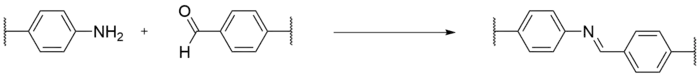 Most of the approaches currently used to synthesize CMPs must be carried out under anhydrous and oxygen-free environments due to the presence of metal catalysts. Due to the use of metal catalysts, polymers inevitably have trace metals present.[11] Reactions, such as the Schiff base reaction, have garnered much attention in that the reactions are metal free. In Schiff base, amine based monomers and aldehyde containing monomers undergo a reaction to create the repeat unit for CMPs. Schiff base is a preferred metal free method due to industrial scale cheap monomers containing multiple aldehyde functional groups. Another benefit of Schiff base is nitrogen is produced in creating CMPs, which could be beneficial for many applications.[12]