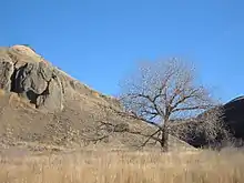 A view upward into a coulee in the Oldman River valley in Lethbridge, Alberta