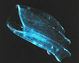 - ↑ Haddock, S. H. D.; Case, J. F. (8 April 1999). "Bioluminescence spectra of shallow and deep-sea gelatinous zooplankton: ctenophores, medusae and siphonophores". Marine Biology. 133 (3): 571–582. doi:10.1007/s002270050497. S2CID 14523078.