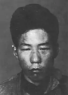 ![]() Namba displaying facial injuries sustained in police custody after attempting to kill Hirohito | |