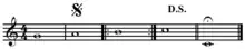 In music notation, dal segno (UK: /dæl ˈsɛnj/, US: /dɑːl ˈsnj/, Italian: [dal ˈseɲɲo]), often abbreviated as D.S., is used as a navigation marker. From Italian for "from the sign", D.S. appears in sheet music and instructs a musician to repeat a passage starting from the sign shown at right, sometimes called the segno in English.[1]