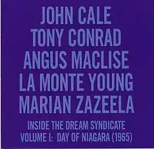 Inside the Dream Syndicate, Vol. I: Day of Niagara or simply Day of Niagara is a bootleg recording of a 1965 performance by the minimalist music group the Theatre of Eternal Music, a.k.a. the Dream Syndicate. Contributors include future Velvet Underground members John Cale and Angus Maclise, composers La Monte Young and Tony Conrad, and artist Marian Zazeela. It received a release in 2000 by the label Table of the Elements against the wishes of Young.[1][2]