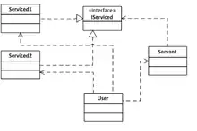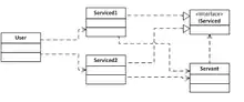 2. On figure 2 is shown opposite situation, where user don’t know about servant class and calls directly serviced classes. Serviced classes then asks servant themselves to achieve desired functionality.