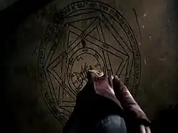 The demonically-possessed Meg Masters is caught beneath the titular devil's trap.
