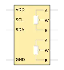 - ↑ "Digital Potentiometer Family Selection Guide". AD5207 - 2-channel 256-position digital potentiometer - datasheet (PDF) (Technical report). Analog Devices.