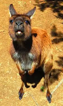 Diprotodontia (/daɪˌproʊtəˈdɒntiə/, from Greek "two forward teeth") is the largest extant order of marsupials, with about 155 species,[2] including the kangaroos, wallabies, possums, koala, wombats, and many others. Extinct diprotodonts include the hippopotamus-sized Diprotodon, and Thylacoleo, the so-called "marsupial lion".