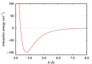 Interaction energy of an argon dimer. The long-range section is due to London dispersion forces.