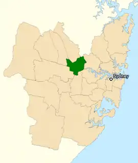 The division is based in the western suburbs of Sydney. Besides Parramatta, it includes Camellia, Clyde, Constitution Hill, Dundas Valley, Granville, Harris Park, Holroyd, Mays Hill, North Parramatta, Oatlands, Rosehill, Rydalmere, Telopea, Wentworthville, Westmead; and parts of Carlingford, Dundas, Ermington, Guildford, Merrylands, North Rocks, Northmead, Old Toongabbie, Pendle Hill, South Granville, South Wentworthville, and Toongabbie.