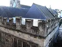The original home of the library was in a small purpose-built two storey crenellated building formed by adding two walls to a concave corner on the north-east end of St Peter's Church, Barnstaple, to form a rectangular building. A stone tablet is set high into the wall inscribed: Bibliotheca Doddridgiana 1667. Its entrance is from the narrow lane known as "Church Walk" which leads southward from "Butchers' Row" past the east end of the parish church and continues as "Church Lane" past the "Church Lane Almshouses". It is a grade II* listed building.[7]