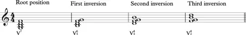 Inversion Bottom note Roman numerals Macro analysis Root position root: 5 V7 in C: G7 First 3rd: 7 V6