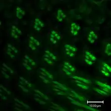 149. 1 2 3 4 Feiler R, Bjornson R, Kirschfeld K, Mismer D, Rubin GM, Smith DP, et al. (October 1992). "Ectopic expression of ultraviolet-rhodopsins in the blue photoreceptor cells of Drosophila: visual physiology and photochemistry of transgenic animals". The Journal of Neuroscience. 12 (10): 3862–3868. doi:10.1523/jneurosci.12-10-03862.1992. PMC 6575971. PMID 1403087.