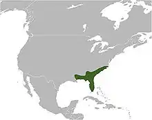 The eastern diamondback rattlesnake is found in the Southeastern United States from southeastern North Carolina, south along the coastal plain through peninsular Florida to the Florida Keys, and west along the Gulf Coast through southern Alabama and Mississippi to southeastern Louisiana. The original description for the species does not include a type locality, although Schmidt (1953) proposed it be restricted to "Charleston, South Carolina" (USA).[2]