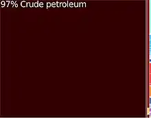 Exports in 2004 reached US$10,530,764,911. The vast majority of Angola's exports, 92% in 2004, are petroleum products. US$785 million worth of diamonds, 7.5% of exports, were sold abroad that year.[42] Nearly all of Angola's oil goes to the United States, 526 kbbl/d (83.6×10^3 m3/d) in 2006, making it the eighth largest supplier of oil to the United States, and to China, 477 kbbl/d (75.8×10^3 m3/d) in 2006. In the first quarter of 2008, Angola became the main exporter of oil to China.[43] The rest of its petroleum exports go to Europe and Latin America.[36] U.S. companies account for more than half the investment in Angola, with Chevron-Texaco leading the way. The U.S. exports industrial goods and services, primarily oilfield equipment, mining equipment, chemicals, aircraft, and food, to Angola, while principally importing petroleum. Trade between Angola and South Africa exceeded US$300 million in 2007.[44] From the 2000s, many Chinese have settled and started up businesses.[45]