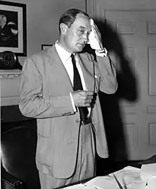- ↑ Harold L. Ickes (February 13, 1946). "The Crucial Decade: Voices of the Postwar Era, 1945-1954, Select Audiovisual Records: Resignation speech of Harold L. Ickes". United States National Archives and Records Administration. Archived from the original on March 31, 2016. Retrieved August 26, 2017.