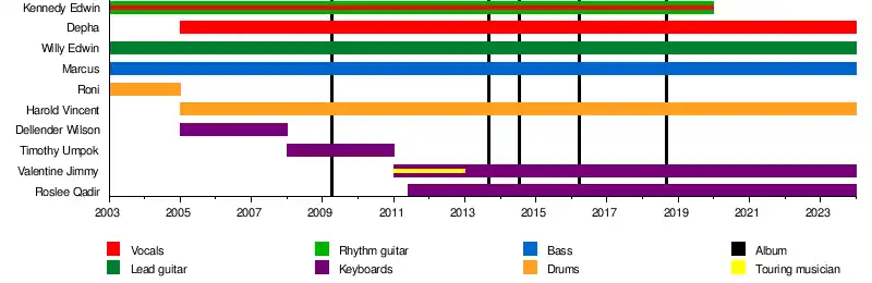 | Past members | Roni Dellender Wilson Timothy Umpok Kennedy Edwin |