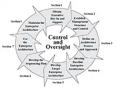 The figure on the right depicts notional activities of an enterprise life cycle methodology. Within the context of this document, Enterprise Life Cycle does not refer to a specific methodology or a specific bureau's approach. Each organization needs to follow a documented Enterprise Life Cycle methodology appropriate to its size, the complexity of its enterprise, and the scope of its needs.[6]