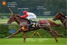 - 1 2 Kang, Hyungsuk; Zsoldos, Rebeka R.; Sole-Guitart, Albert; Narayan, Edward; Cawdell-Smith, A. Judith; Gaughan, John B. (15 April 2023). "Heat stress in horses: a literature review". International Journal of Biometeorology. 67 (6): 957–973. Bibcode:2023IJBm...67..957K. doi:10.1007/s00484-023-02467-7. PMC 10267279. PMID 37060454.