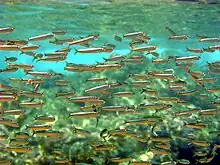 Juveniles schooling by day in shallow water in the Ligurian Sea, Italy