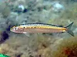 The European pilchard (Sardina pilchardus) is a species of ray-finned fish in the monotypic genus Sardina. The young of the species are among the many fish that are sometimes called sardines.[3][4] This common species is found in the northeast Atlantic, the Mediterranean, and the Black Sea at depths of 10–100 m (33–328 ft).[1] It reaches up to 27.5 cm (10.8 in) in length and mostly feeds on planktonic crustaceans.[2] This schooling species is a batch spawner where each female lays 50,000–60,000 eggs.[2]