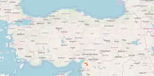 The European road E98 is a Class A West-East connection road and connects the Turkish city Topboğazi with the border of Syria which makes it at a length of approximately 58 kilometers. The route has been recorded by the UNECE as follows:[1] Topboğazi - Kırıkhan - Reyhanlı - Cilvegözü - Syria.