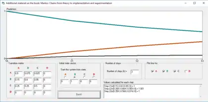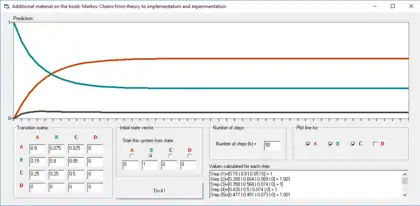 Markov chains prediction on 50 discrete steps. Again, the transition matrix from the left is used.[6]