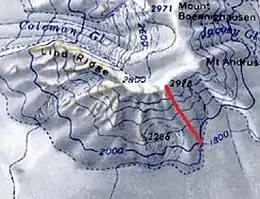 A fall line refers to the line down a mountain or hill which is most directly downhill; that is, the direction a ball or other body would accelerate if it were free to move on the slope under gravity. Mathematically the fall line, the line of greatest slope, is the negative of the gradient (which points uphill) and perpendicular to the contour lines.