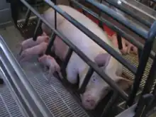A sow will often stay in a gestation crate for the four-month period of her pregnancy.
