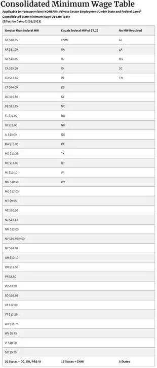 - ↑ Congressional Research Service (March 2, 2023). "State Minimum Wages: An Overview". Chart on page 3.