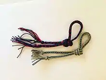 A related technique, which involved the loops being placed over the hand or fingers, is the Japanese kute-uchi style.[3] This technique arose in the 7th Century, and were used through the Middle Ages to the 19th century, for uses such as tying armour.[4]