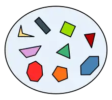 A set is the mathematical model for a collection of different[1] things;[2][3][4] a set contains elements or members, which can be mathematical objects of any kind: numbers, symbols, points in space, lines, other geometrical shapes, variables, or even other sets.[5] The set with no elements is the empty set; a set with a single element is a singleton. A set may have a finite number of elements or be an infinite set.